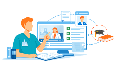Virtual Patient Education integrates seamlessly into coursework or clinical training, supporting American Speech-Language-Hearing Association (ASHA) standards, clinical skills, and competency development through supervised, real-patient experiences.